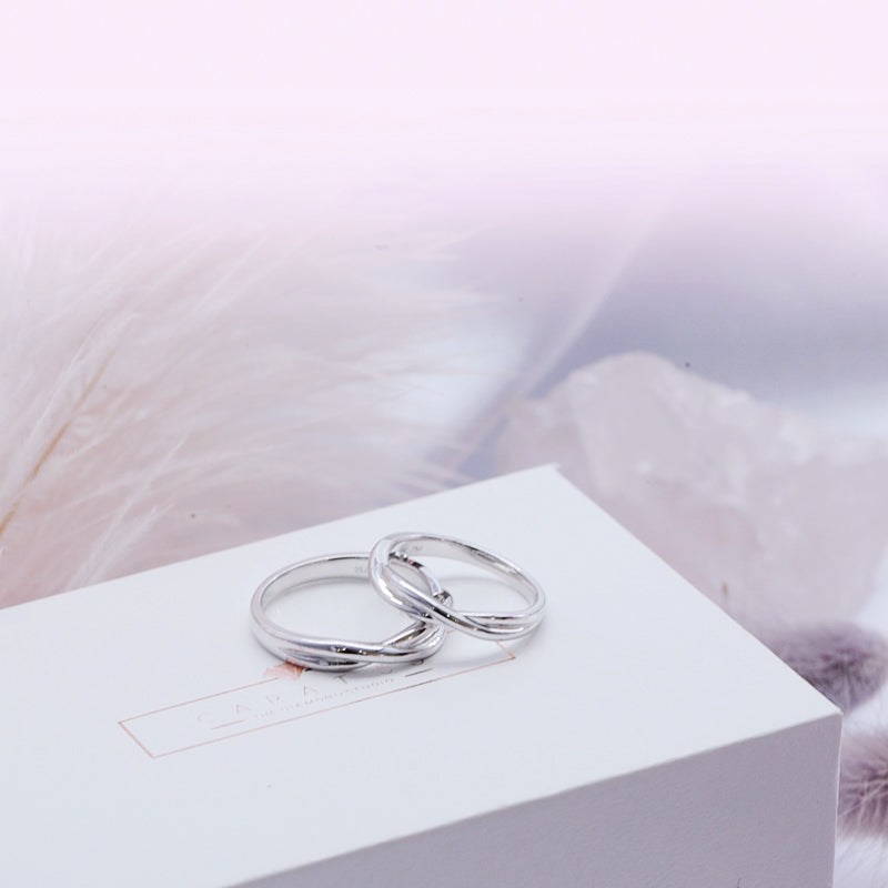 The wanderlust wedding band portrays the never-ending dream of a couple. The two rings merge into one another with an infinity symbol representing a relationshipäó»s goals.