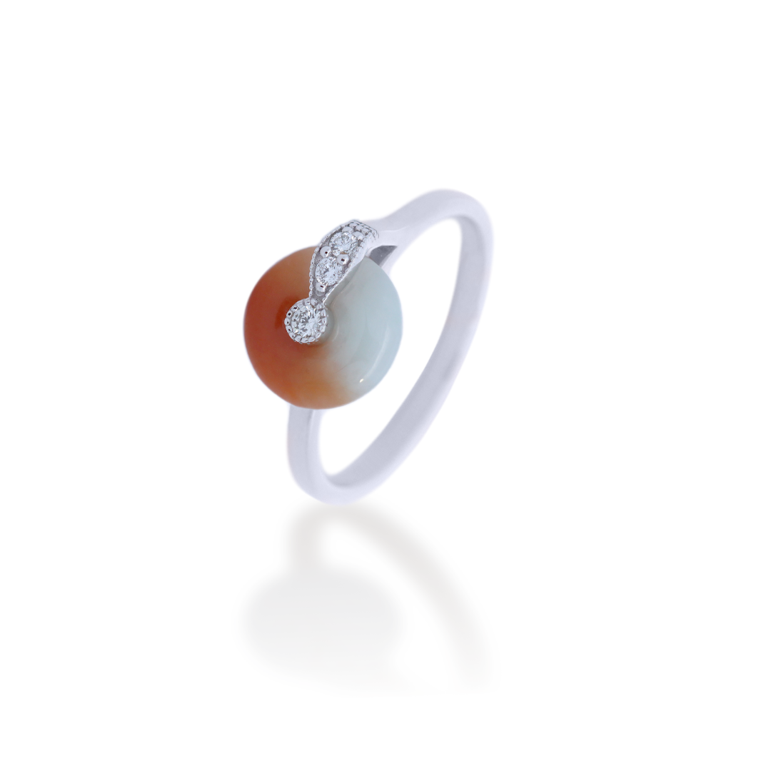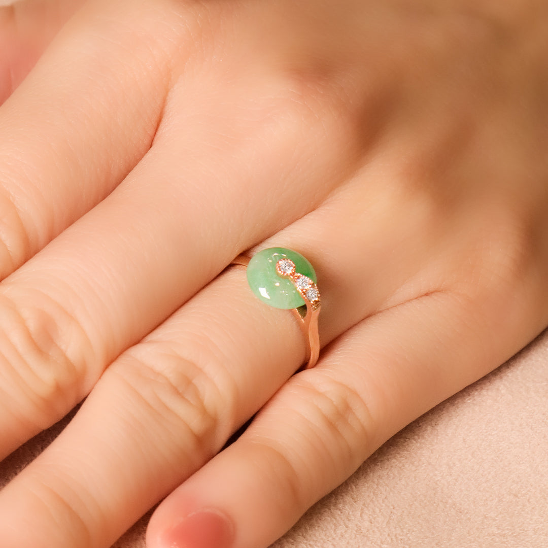 Bedazzled with scintillating diamonds, this elegant ring draws attention to its circular and glossy jade gemstone. Add a pop of colour to your outfit with this statement piece!