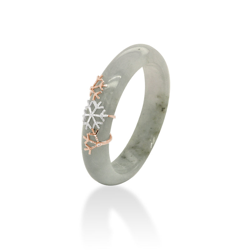 The soft air and revitalizing cold of Winter are beautifully depicted by the light translucent green jade embellished with intricate diamond-studded snowflakes. The Winter Frost Bangle is where exceptional gemstones meet fine jewellery craftsmanship.